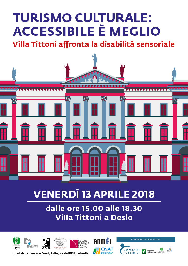 L’obiettivo è quello di capire come rendere accessibili alcuni luoghi della cultura in Lombardia e lo scopo ultimo è quello di inserire nel mondo del lavoro, proprio in questi luoghi, delle persone con disabilità sensoriali per un tirocino della durata di 6 mesi. In questa cornice, si iscrive il convegno che si focalizzerà sulle possibilità di attivazione di percorsi di accessibilità nella gestione e fruizione di Villa Tittoni.