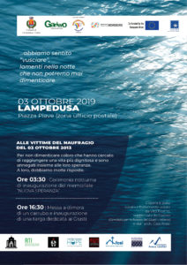 Il 03 OTTOBRE 2019 a LAMPEDUSA si terrò un evento in memoria delle vittime del naufragio del 3 ottobre 2013.