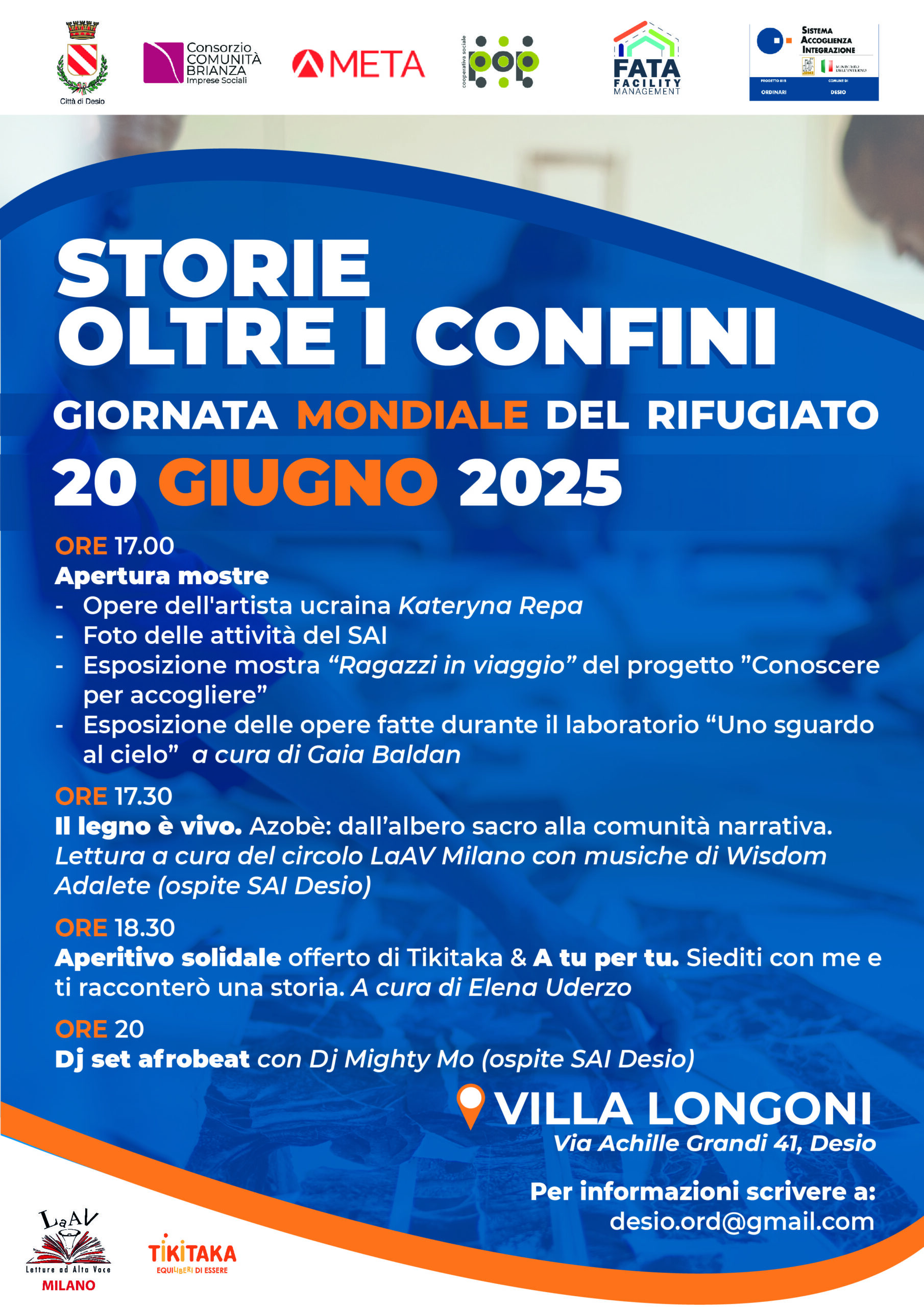 In occasione della Giornata Mondiale del Rifugiato, il SAI (Sistema di Accoglienza e Integrazione) Desio, risultato di una ormai storica collaborazione fra il comune di Desio e Consorzio Comunità Brianza, e diverse realtà associative del territorio, organizza un evento aperto alla cittadinanza con l’obiettivo di sensibilizzare e promuovere la conoscenza delle storie, delle culture e dei percorsi di chi ha affrontato il difficile cammino della migrazione.